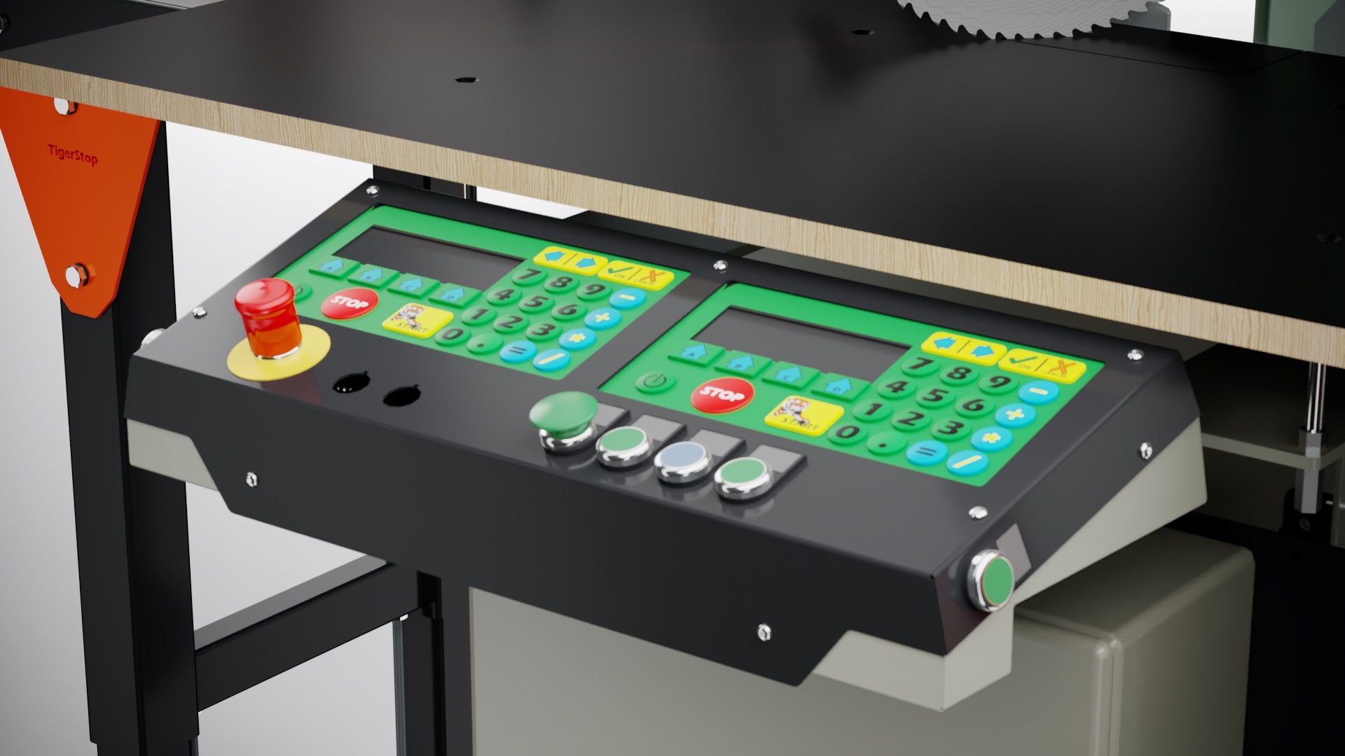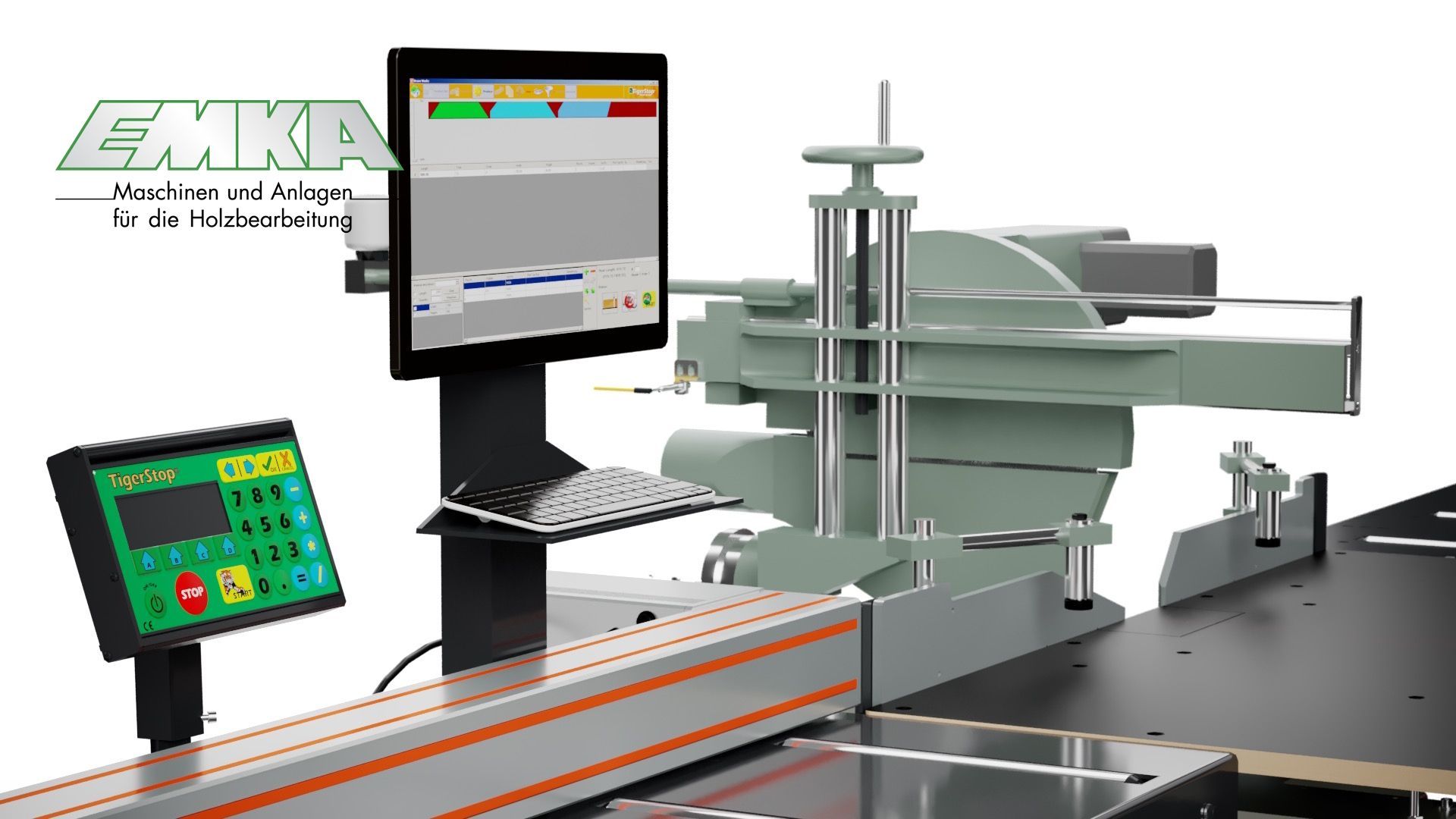 Die TigerAngle ist mit der intelligenten Software von Beamworks ausgestattet. Damit verfügt die TigerAngle über spezielle Funktionen, für zum Beispiel komplexe Doppelgehrungen. Auf dem großen Touchscreen können Sie Ihre Schnittliste eingeben oder laden. Durch die maschinenintegrierte Zuschnittoptimierung entfällt die individuelle Bedienung an den TigerStop-Konsolen.